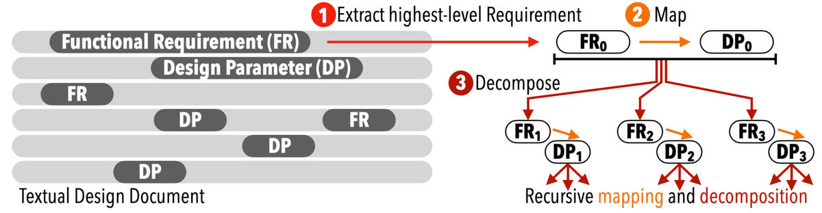 Design documentation lacks consistent structure, may be textually described, and is often sparse. This research applies natural language processing to recursively extract latent problem-solving information trees from unstructured design documentation.