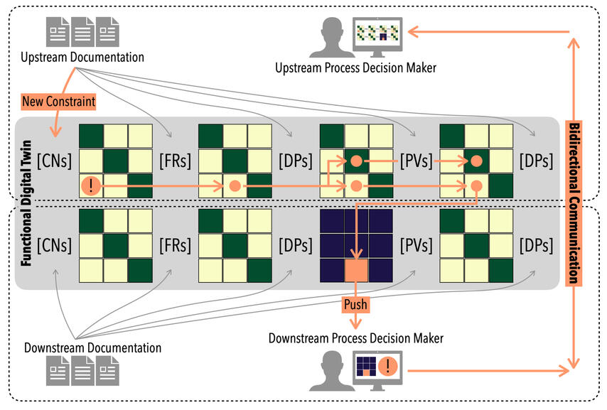 Circularity is a holy grail of sustainability with an achilles heel when it comes to manufacturing: coupling inputs of one process to the outputs of another renders production vulnerable to slight adjustments. We developed a digital twin representing function to map how changes propagate through an industrial symbiosis.