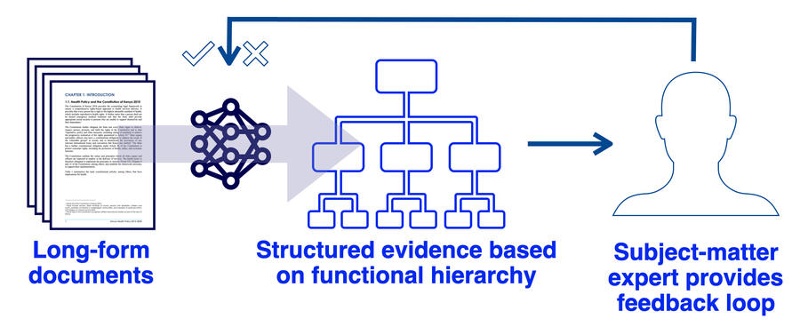 Experts in sustainability spend hours reading long policy documents to manually extract evidence of synergy or trade-offs with Sustainable Development Goals. We represent sustainability targets as a structure of design requirements and train language models to extract evidence. This research also focuses on validating extractions with an expert human pool.